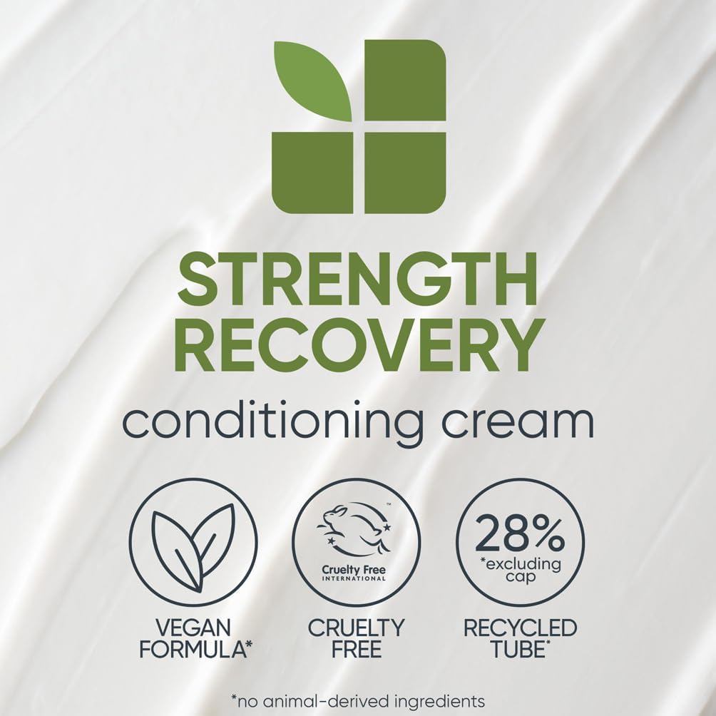 Conditioning cream that reduces breakage and leaves hair up to 3x stronger* *combing test after using the strength recovery shampoo and conditioner on bleached hair vs classic shampoo.