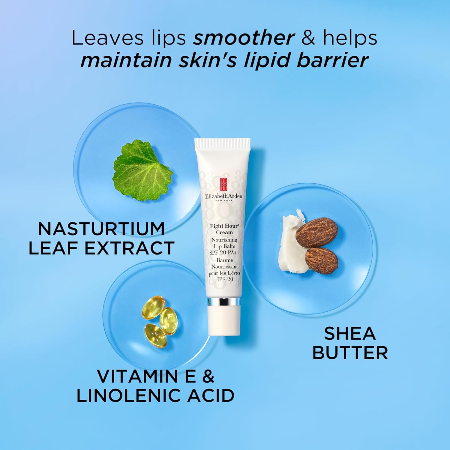 Eight hour cream was created more than seventy years ago, in 1930, by miss Arden herself and was the first ever cosmetic product to bear the Elizabeth Arden name. Since its debut, eight hour has escalated to near cult status. vitamins and minerals to indulge your lips with the moisture they need to stay soft and smooth. And to help prevent further damage, nothing beats our UVA and UVB broad spectrum sun protection. Squeeze tube and apply liberally with self-applicator tip. Re-apply as needed and enjoy softer, smoother lips