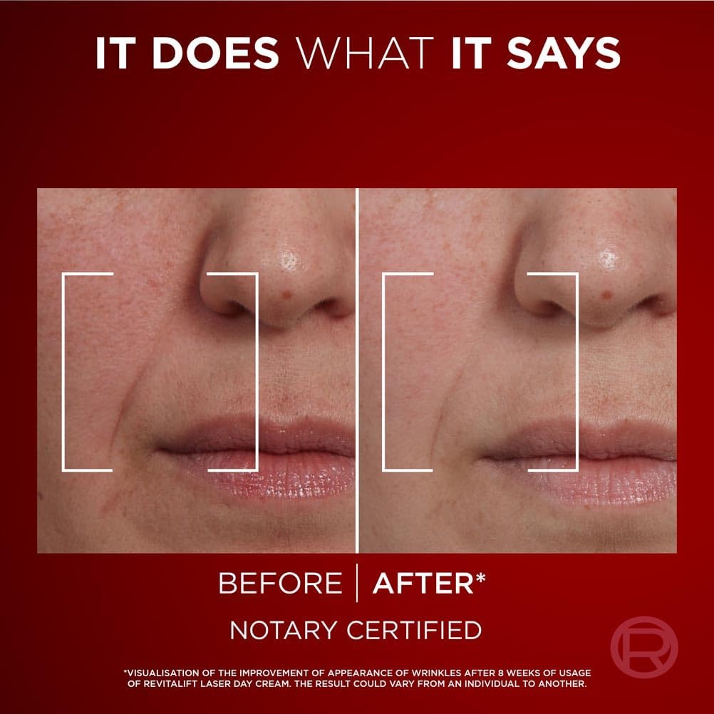 Revitalift Laser Triple Action Anti-Ageing Day Cream, now with a NEW formula, smooths wrinkles, firms and brightens the look of skin. Formulated with 3 top derm actives, Pro-Retinol, Hyaluronic Acid and Vitamin C*, this formula targets signs of ageing and renews skins appearance. With Clinically proven results, skin feels more toned and firmer, replumped with moisture. Skin texture looks more even, and fine lines and crows feet look reduced. Our skincare products tolerance is evaluated on all skin types even sensitive skin, and tested under dermatological control with a minimum of 600 applications PRO-RETINOL Helps to smooth wrinkles and renew skin texture. HYALURONIC ACID Intensely hydrate and replump the skin. VITAMIN C* Helps to boost skin radiance and visibly correct skin tone unevenness. Validated by dermatologists and effective on all skin types. Our skincare products tolerance is evaluated on all skin types even sensitive skin, and tested under dermatological control with a minimum of 600 applications. *Vitamin Cg