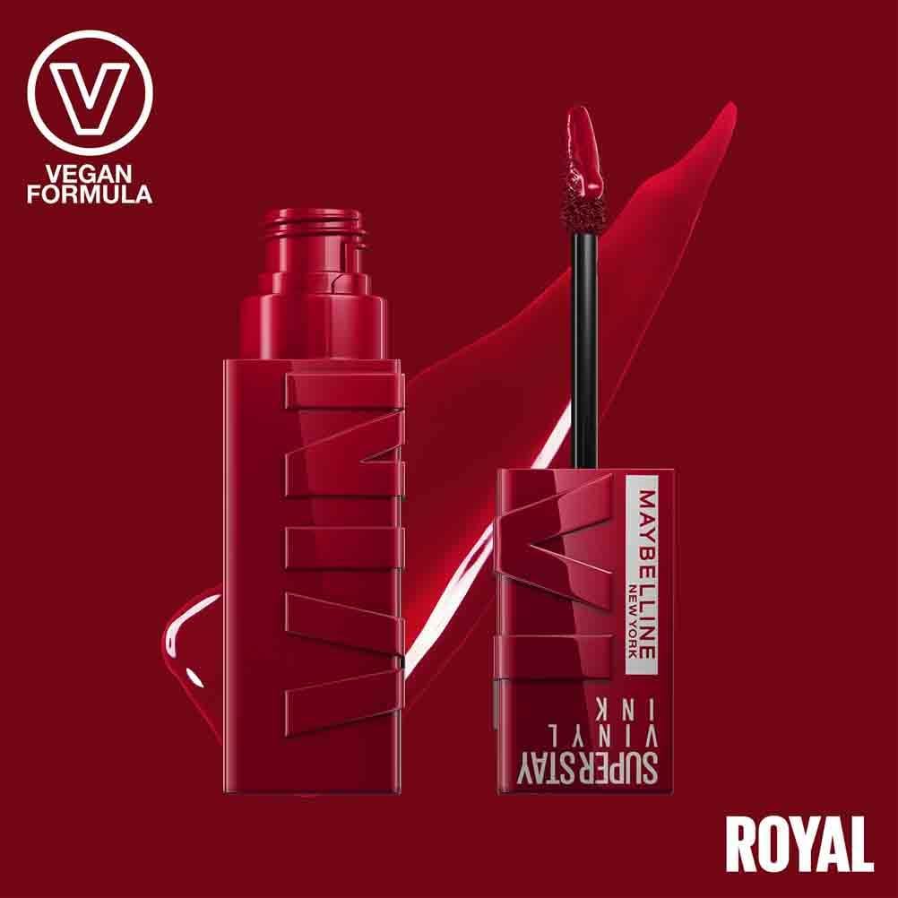 Meet Maybelline New York's SuperStay Vinyl Ink liquid lipstick, designed to deliver no-budge vinyl colour that wears for up to 16 hours. This long wear lipstick features an innovative Colour Lock formula that truly defies smudging and transfer, ensuring your look remains flawless throughout the day. Experience an instant shine finish that radiates brilliance. This is more than just a lipstick; it’s an ultra-pigmented ink that delivers a long-lasting vinyl-effect shine. You'll achieve brilliant colour and ultra-glossy lips that stay vibrant. Our vegan formula is thoughtfully enriched with Vitamin E and aloe, giving you an ultra-comfortable feel on your lips. Enjoy truly smudge-free and transfer-free wear* . Application is made incredibly easy with the easy-to-use arrow applicator. Simply shake the product for 5 seconds, then glide with one stroke using the arrow-shaped applicator to deliver a thin layer of formula for optimal results. SuperStay Vinyl Ink is available in a stunning range of 10 vinyl shades, so you can find the perfect hue to express yourself. At Maybelline, we are committed to a world without animal testing; we do not test on animals, instead practicing effective, alternative testing methods to ensure product safety.