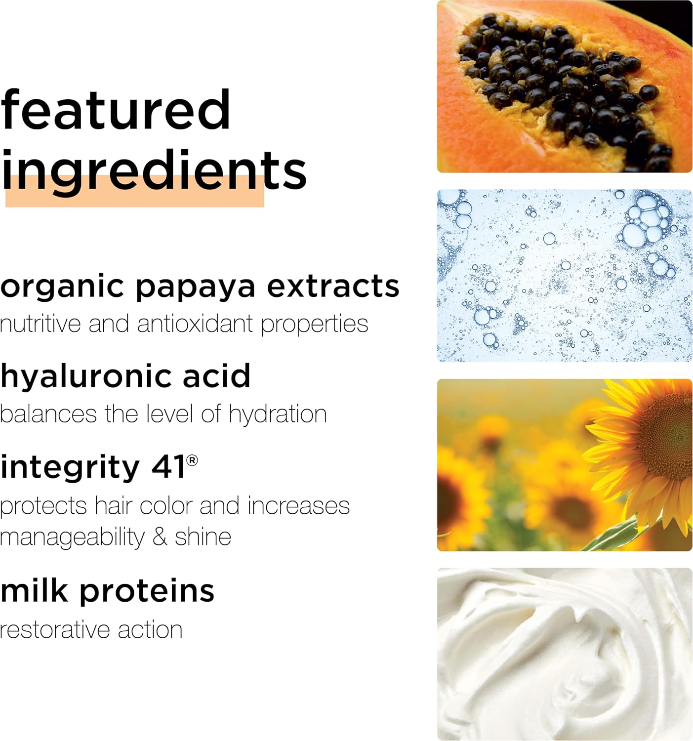 Contains organic extract of Papaya, integrity 41 and hyaluronic acid with anti-aging and colour protection function