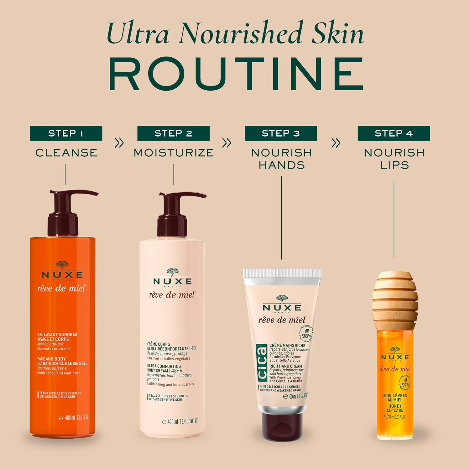 Discover NUXE Rêve de Miel Ultra-Rich Face and Body Cleansing Gel for daily use on dry and sensitive skin. A moment of pure pampering in the shower.