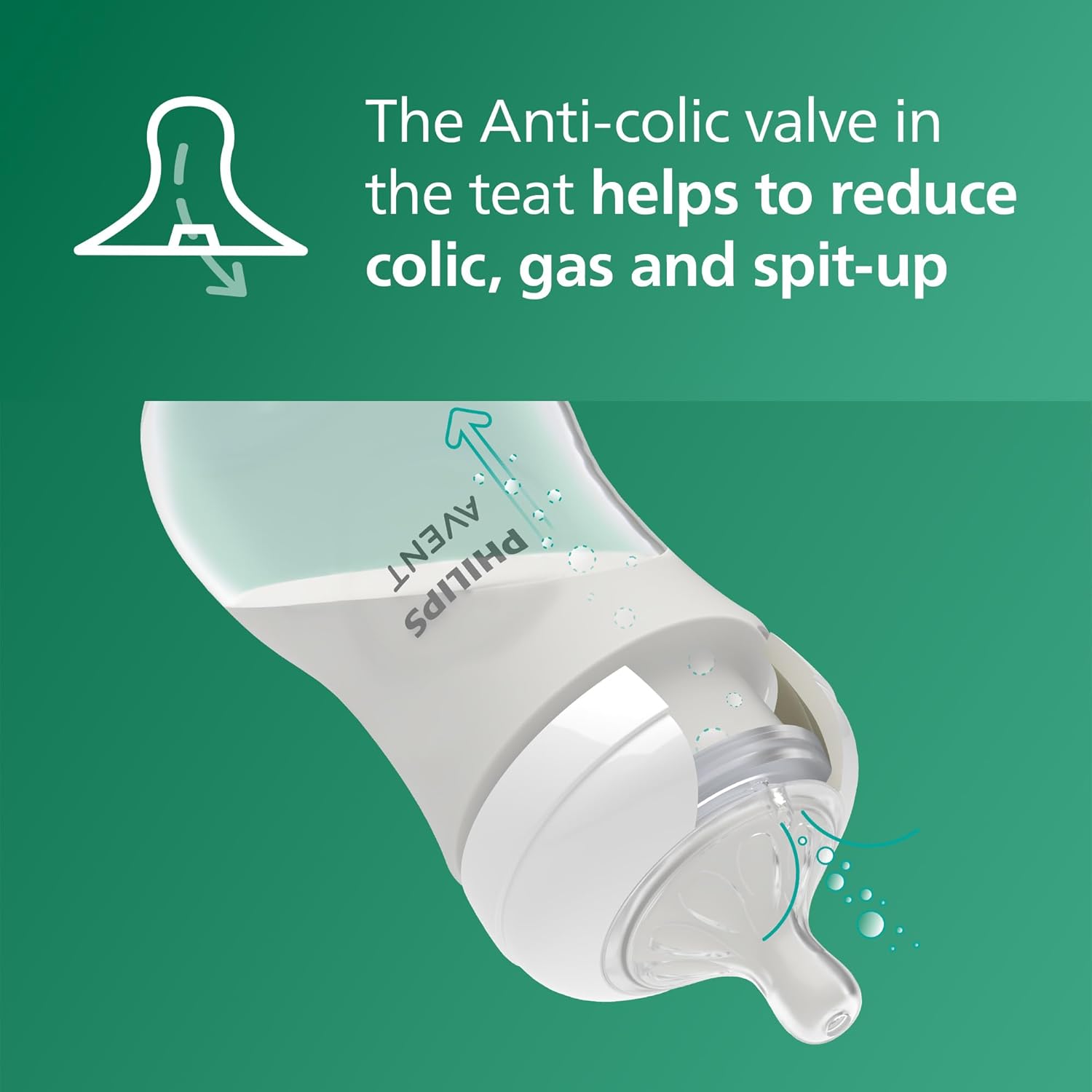 - Anti-colic valve: The baby bottle is designed to keep air away from the baby's tummy during feeding
