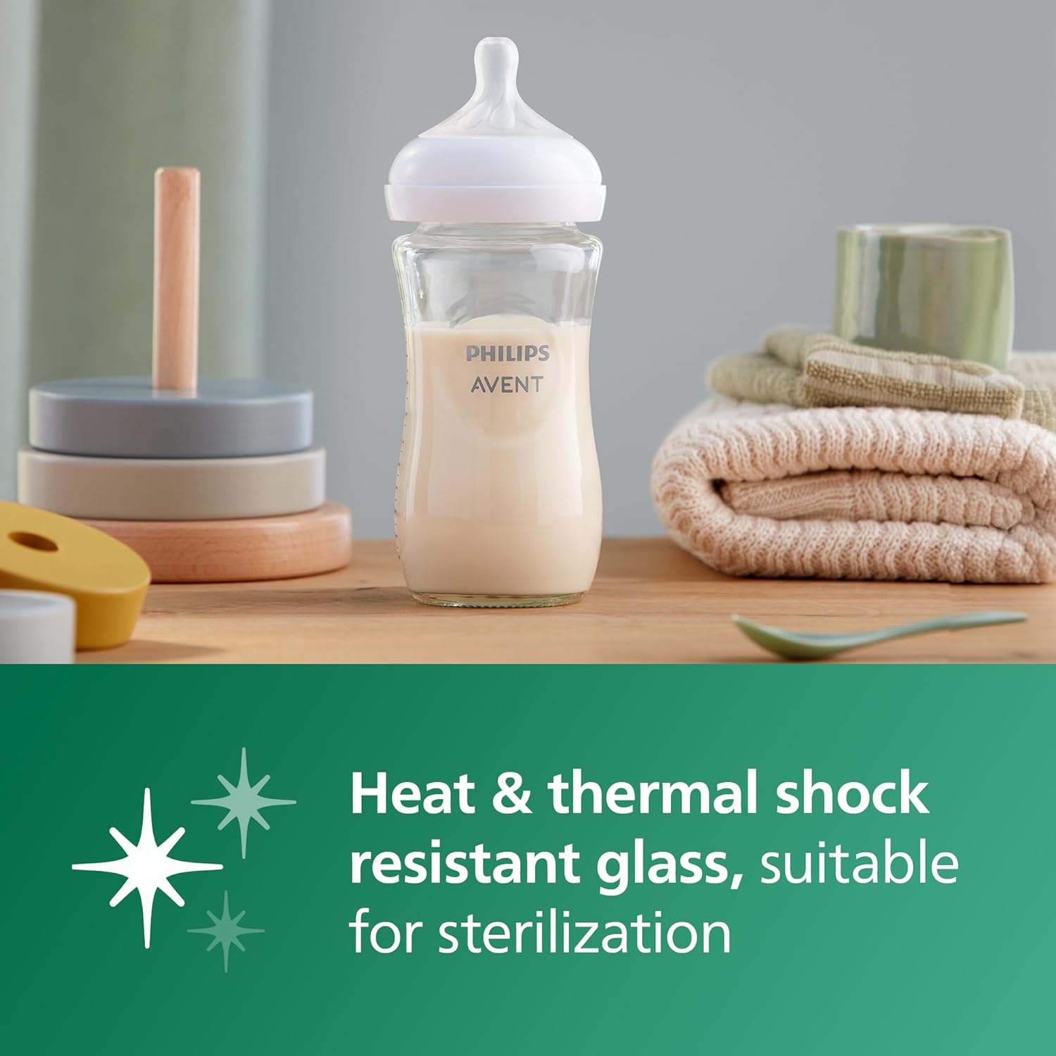 - Heat resistant glass: Made of borosilicate glass, the Avent glass bottle is heat and thermal shock resistant