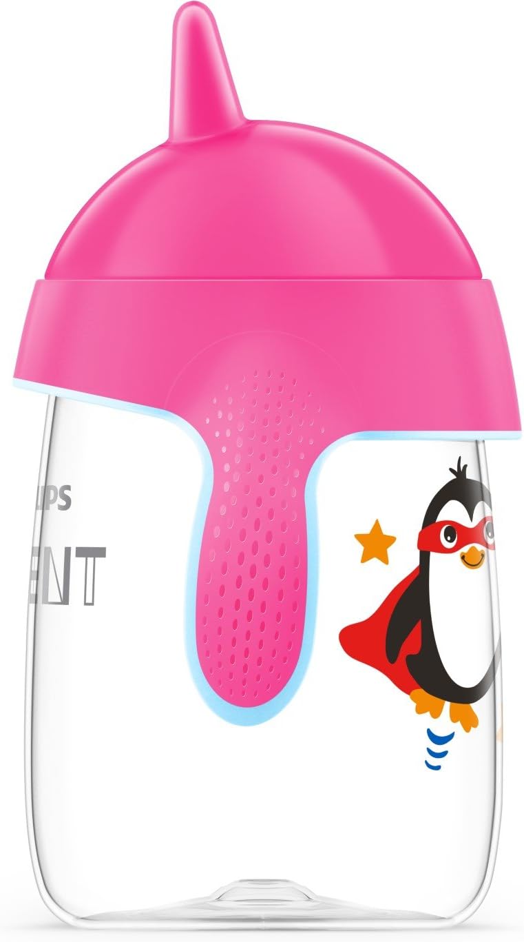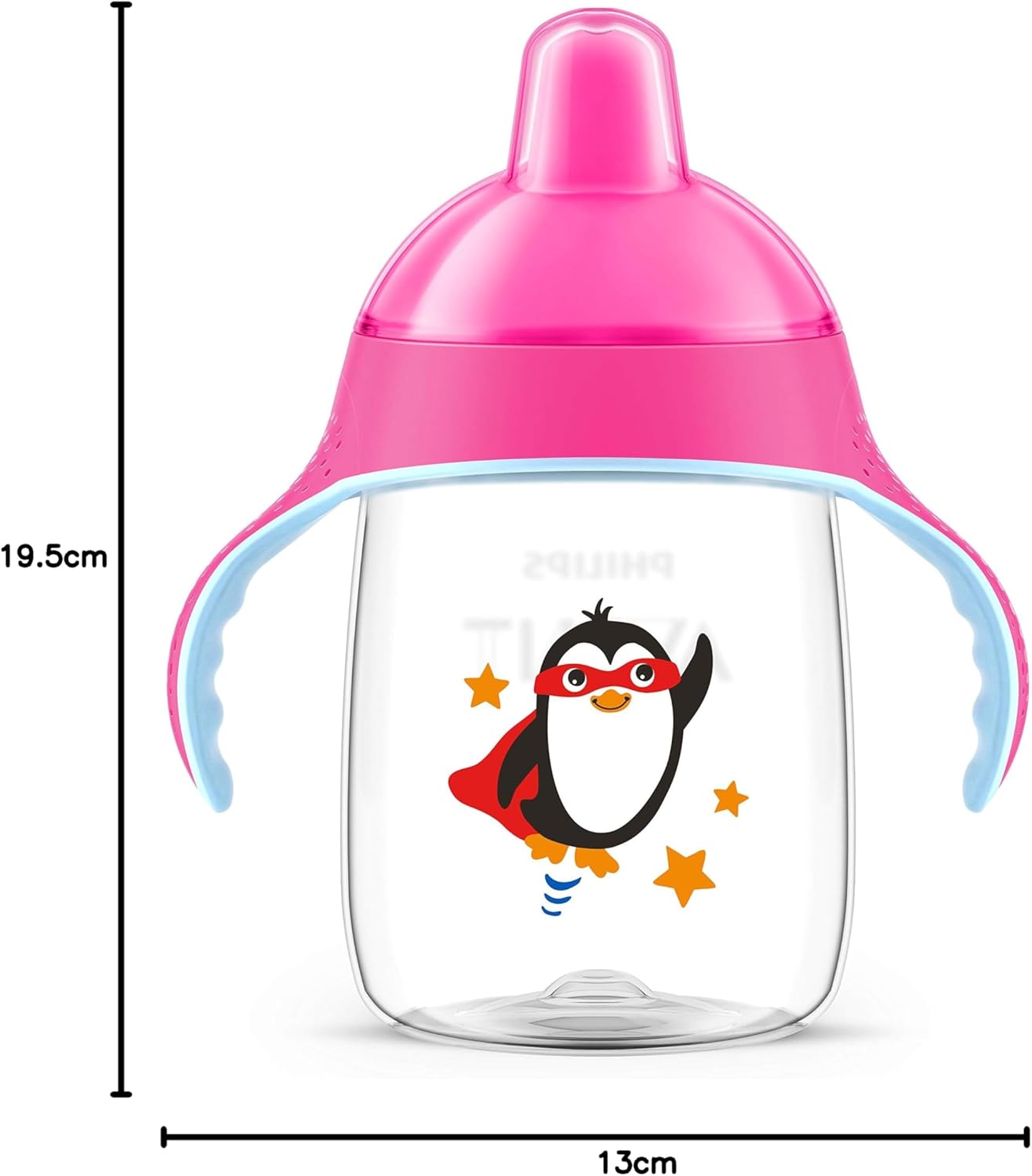 Philips Avent magic cup has soft non-slip handles ensure easy grip for little hands and the hard spout is bite resistant. Made from polypropylene material. Easy for your child, convenient for you. The angled spout is designed to help toddlers take their first sips easily without tilting their head back too much. The child is able to adopt a natural neck position while drinking. Capacity: 260 ml. Available in pink colour.