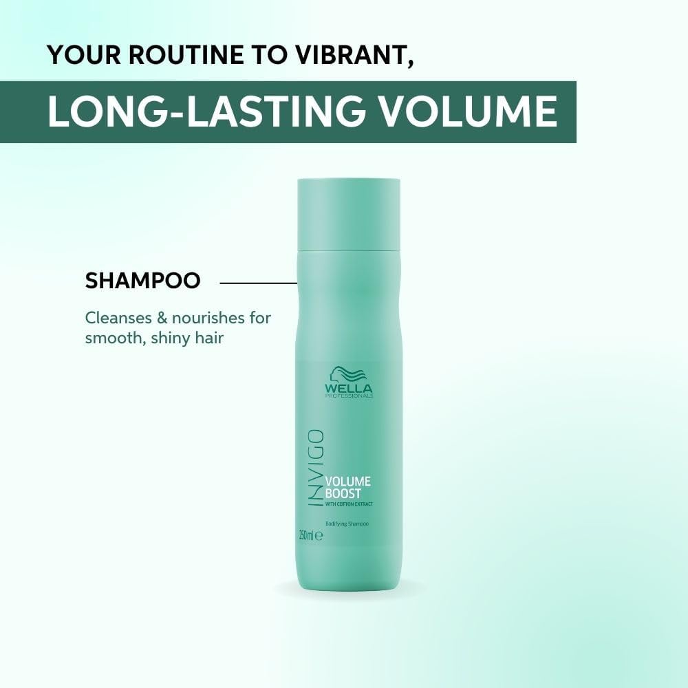 Wella professionals invigo Bodifying Shampoo with cotton extract and spring force blend is a Volumizing Shampoo that gives lightweight body and removes residue from hair. Gives lightweight care for visibly uplifted volume. A lightweight formula that gives manageability and shines without weighing down even fine hair. It effectively removes styling product residue from the hair and giving a fresh and clean feel to the scalp and hair. Comes in 250 ml bottle.